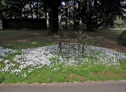 | これからは サトザクラ。 オオアマナが咲き始めました。 まもなくフジも開花します。 |
