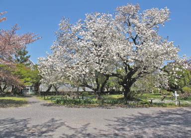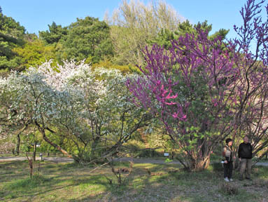 | 中央は ヤマザクラ。 手前の分類標本園も動き出しています。 |