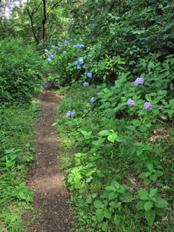 | そして40番通りの 売店までの左側に、日本に自生する「アジサイ」や「ガクアジサイ」が続く。 |