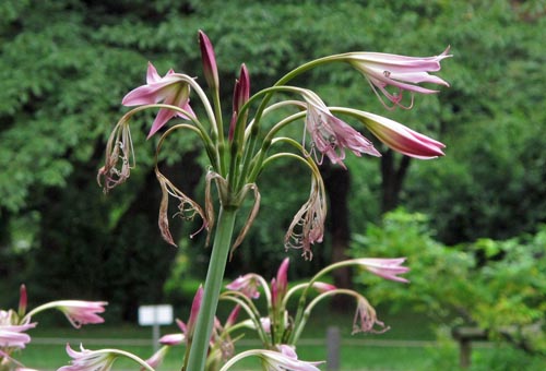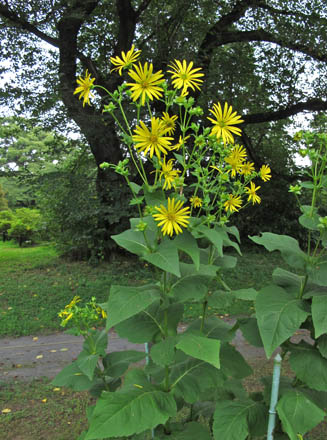 | 本来繁殖力の旺盛な木だが、日陰で弱っている。 精子発見のイチョウの裏にあるもう一本と、分類標本園の木は強く剪定されたために、今年の枝は花を付けていない。 近くを歩くだけで