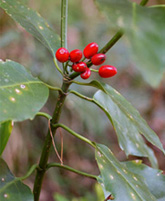 桃叶珊瑚 と呼んでいる。 珊瑚は赤い実を指しているのだろう。