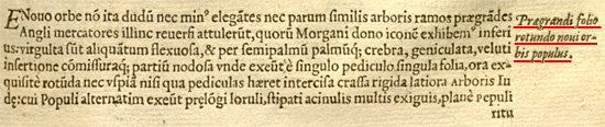novi orbis populus」で、始めの3語は「極めて大きい丸い葉、」。次の3語がうまく訳せないが、 |
