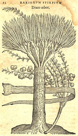 | クルシウスは16世紀には非常に影響力のあった学者であり、リュウケツジュは奇怪な樹木として広く知れ渡ったに違いない。 |