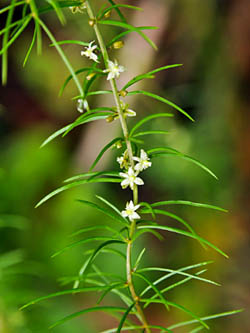 リンネはこの本でアスパラガス属に14種を記載した。その最後が本種だが、属名に疑問符?が付いており、自信が無かったことを示している。脚注には、(未確認だが?)スペイン産、花はアスパラガス属に似ている、などが書かれている。 |