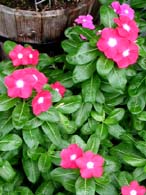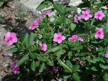 用 途 : | 耐寒性がないため日本でもは越冬せず、夏の1年草としておなじみである。熱帯では茎が木質化する。 矮性やほふく性の園芸品種も作られており、色もピンクの他に、紅色、サーモンピンク、白色、白の中心が赤いものなどがある。 →参考写真 様々なアルカロイドが含まれており、最近は製薬の原料として利用されている。 |